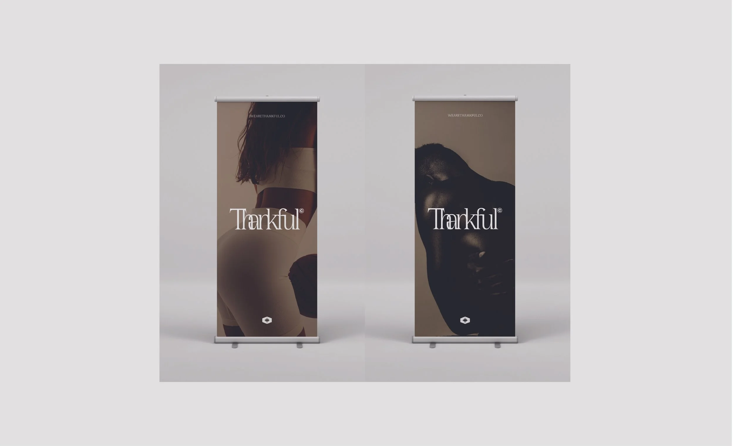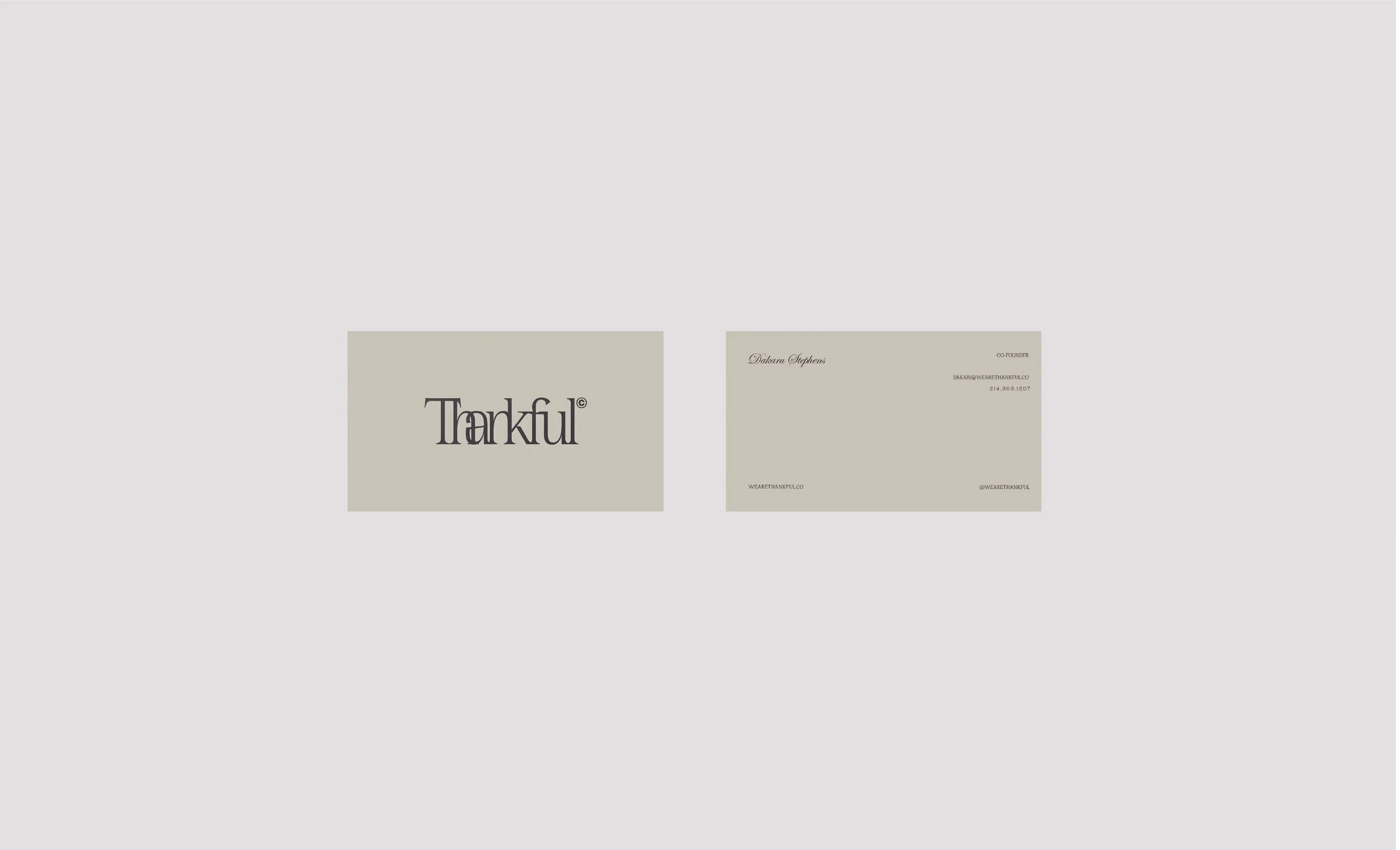 We chose to craft a serif logotype using the Cirka font family. The idea was to create a logotype that felt timeless – that felt elegant, yet symbolized strength without being overly masculine, or aggressive. The logomark represents vision. We wanted to set a foundation for customers that encouraged them to have vision of their lives. Thankful© was so aware of their mission and the mark is indicative of that.